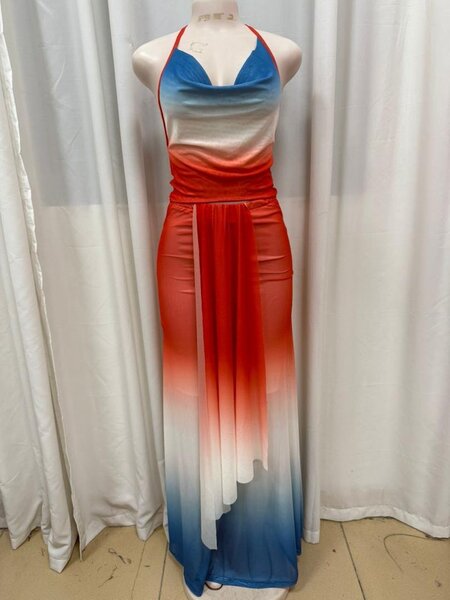 Élégante robe dégradée pour soirées et événements spéciaux. Tissu fluide et design sans manches pour une allure chic et moderne. Parfaite pour séduire lors de vos occasions prestigieuses.