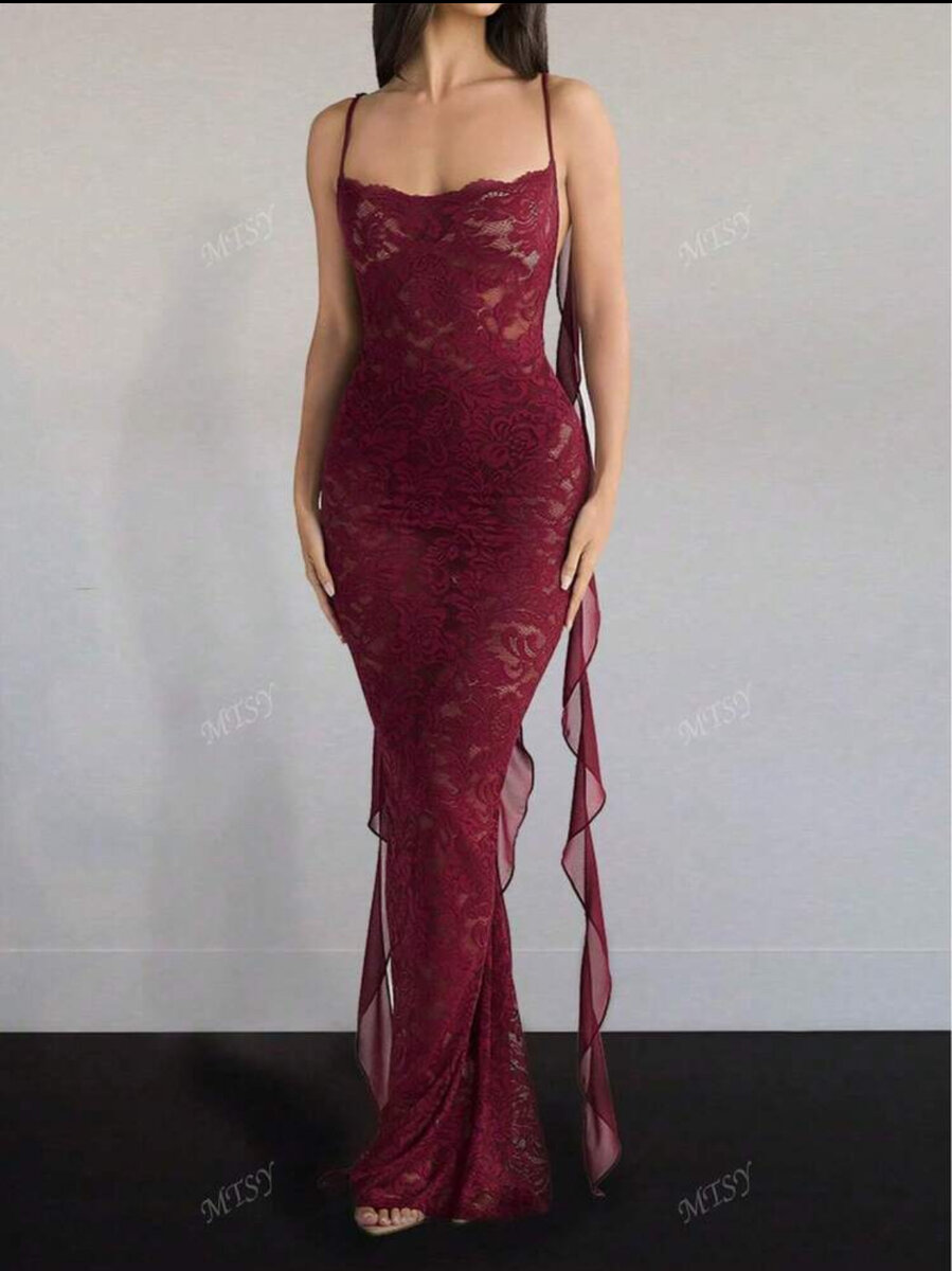 Découvrez l'élégance avec cette robe longue en dentelle bordeaux, parfaite pour une soirée glamour. Avec son design ajusté et ses détails en dentelle, elle vous assure allure et style. Idéale pour les occasions spéciales, cette robe mettra en valeur votre silhouette avec sophistication.