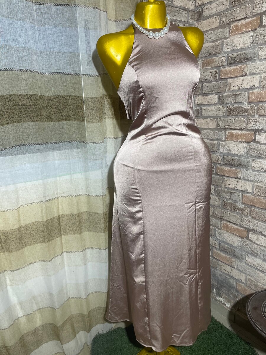 Élégante robe longue en satin, idéale pour les soirées et occasions spéciales. Design dos nu et ajustement flatteur pour un look glamour. Parfaite pour briller lors d'événements.