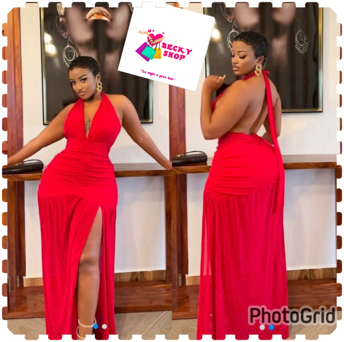 Découvrez notre robe longue rouge élégante et sexy, parfaite pour les soirées et événements spéciaux. Son dos nu et sa fente audacieuse ajoutent une touche glamour, idéale pour briller.