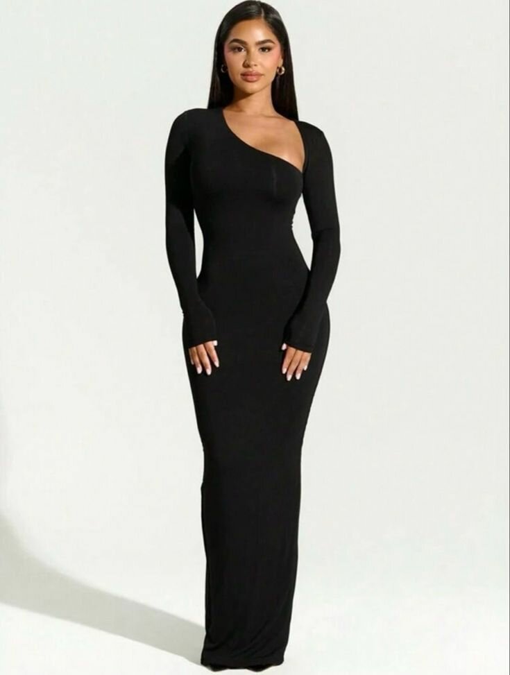 Découvrez l'élégance pure avec cette robe longue noire à manches longues et découpe sexy. Parfaite pour les soirées chic, elle met en valeur votre silhouette. Un must-have pour un look sophistiqué!