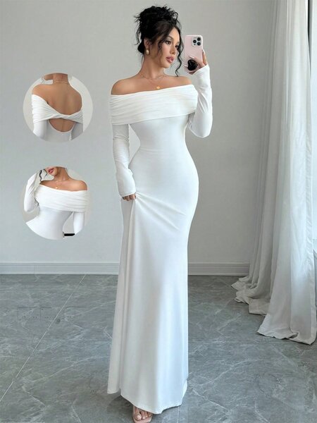 Découvrez notre robe longue blanche élégante avec épaules dénudées, parfaite pour les soirées spéciales. Son design raffiné et sa coupe ajustée épousent vos courbes pour une silhouette chic et sophistiquée. Idéale pour les mariages ou occasions formelles.