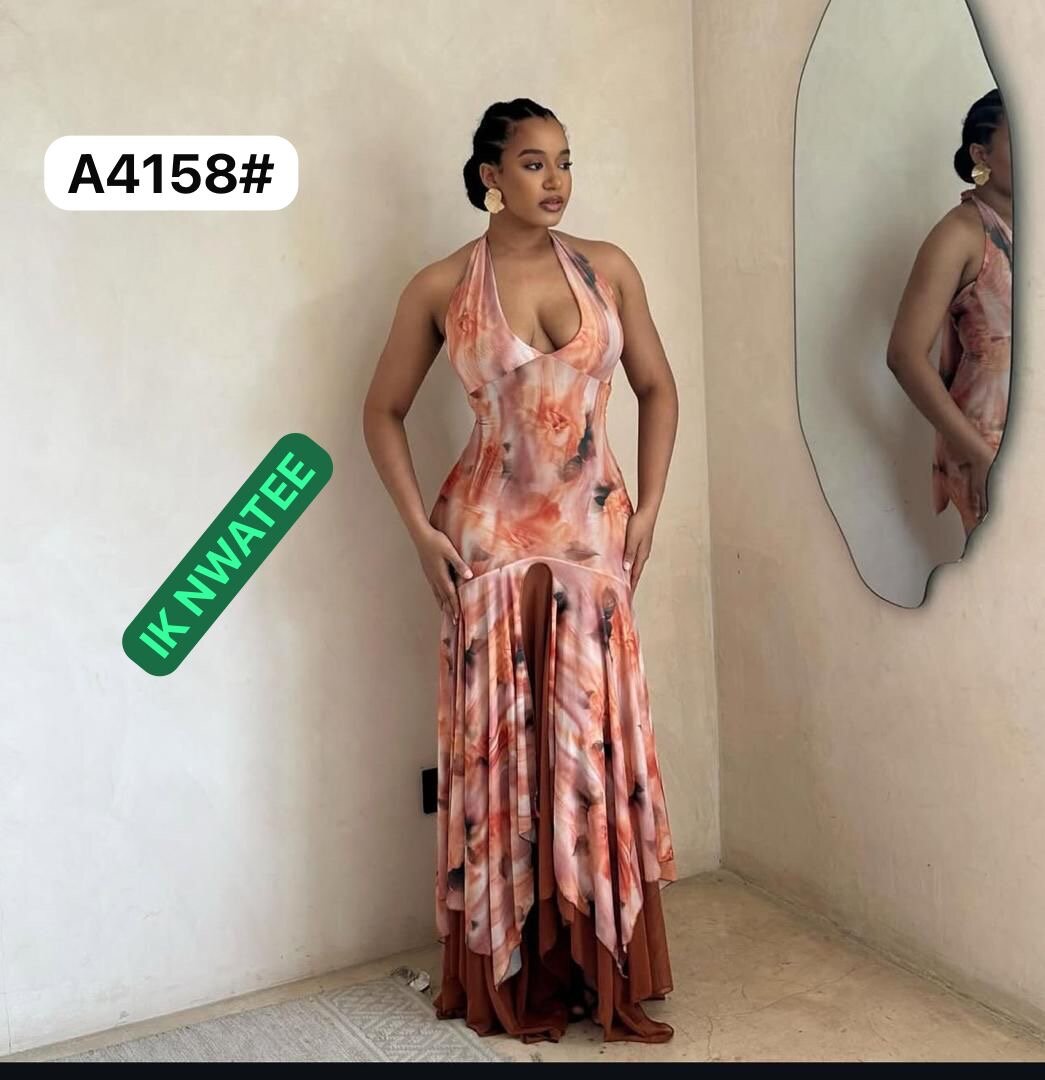 Découvrez cette magnifique robe longue aux nuances florales. Parfaite pour des soirées glamour, elle épouse gracieusement la silhouette et offre un style unique et sophistiqué.