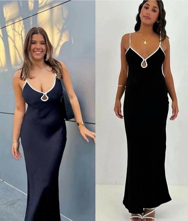 Découvrez cette robe longue noire avec détail contrasté blanc, idéale pour toutes occasions spéciales. Sa coupe flatteuse s'adapte élégamment à votre silhouette pour un look chic et moderne. Parfaite pour des soirées, mariages ou dîners élégants. Un indispensable dans la garde-robe de chaque femme!