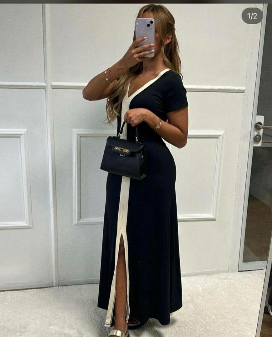 Découvrez cette robe longue élégante pour femme, parfaite pour toutes les occasions. Sa coupe flatteuse et son design bicolore vous assurent un look raffiné. Idéale pour une soirée ou un événement formel.