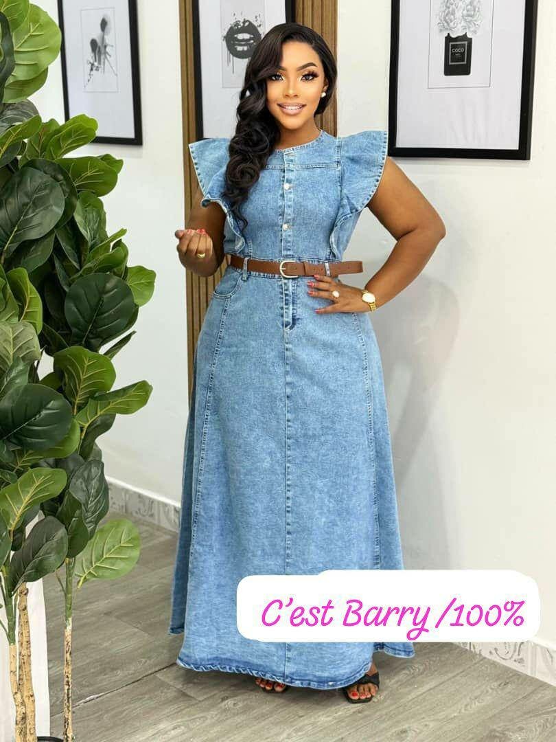 Élégance et confort réunis dans cette robe longue en jean. Idéale pour toutes les occasions, elle mettra en valeur votre silhouette grâce à sa coupe ajustée et sa ceinture. Un choix parfait pour un look élégant et décontracté.