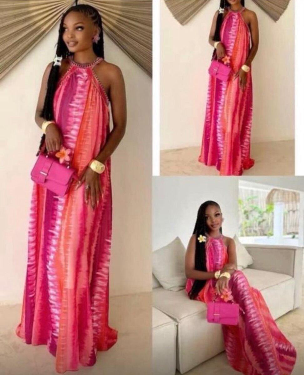 Découvrez cette robe longue éclatante, parfaite pour les journées ensoleillées. Conçue avec un tissu léger et des couleurs vives, elle assure à la fois confort et style. Son design élégant et ses détails raffinés en font un choix idéal pour des occasions spéciales ou des sorties décontractées. Soyez au cœur de l'été avec cette pièce qui attire tous les regards!