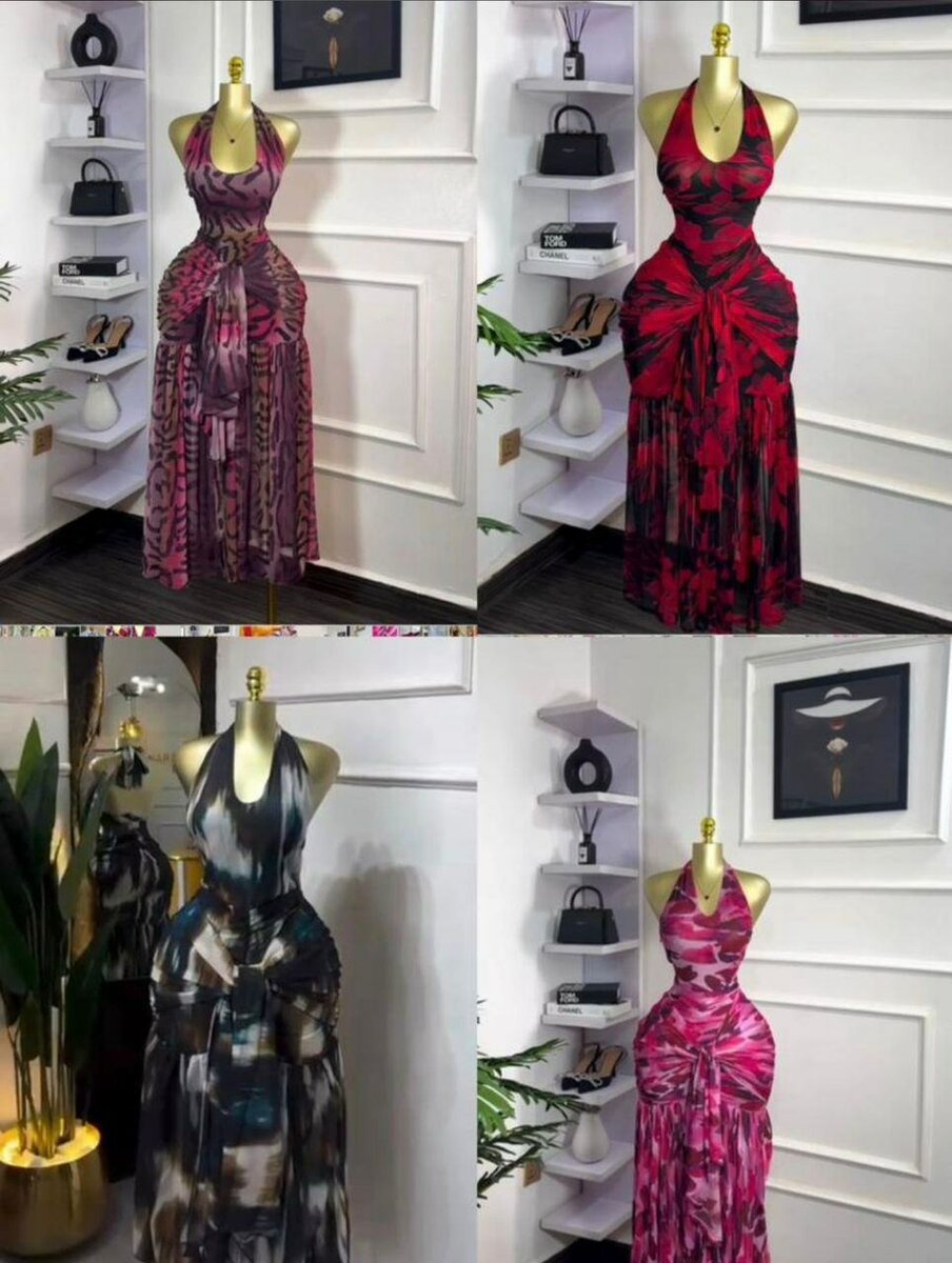 Cette robe longue élégante avec motifs est idéale pour soirées et événements spéciaux. Tissu fluide et design flatteur qui met en valeur votre silhouette.