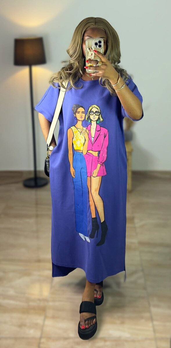 Découvrez cette robe longue d'été pour femme, parfaite pour des journées ensoleillées. Confortable et élégante, elle présente un imprimé original de deux femmes. Idéale pour un look décontracté ou pour une soirée.