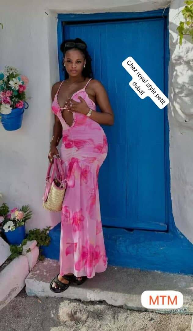 Élégante robe longue fleurie rose pour femme. Parfaite pour une soirée ou des vacances