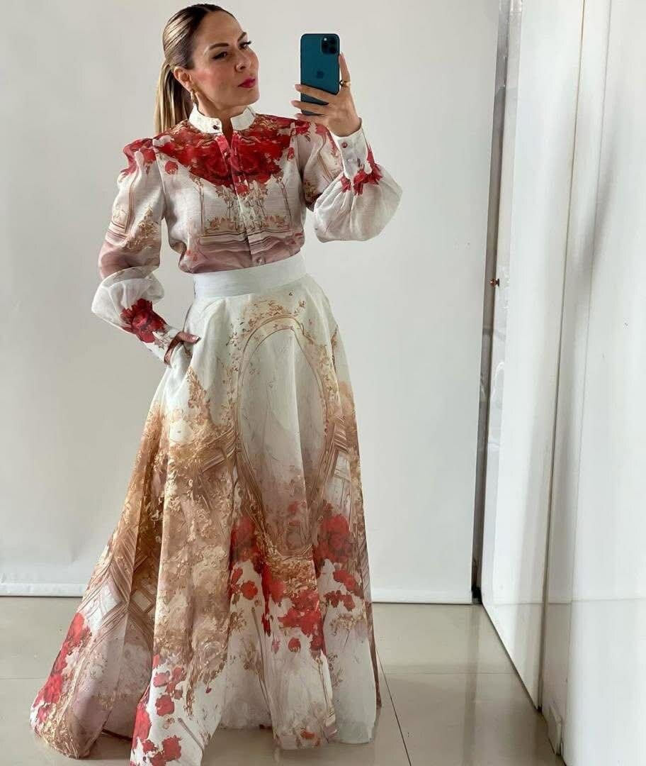 Découvrez cette somptueuse robe longue imprimée de motifs floraux et dorés. Parfaite pour les occasions spéciales, elle allie élégance et modernité avec son col haut et sa ceinture à nœud subtil. Un choix idéal pour celles qui souhaitent un look à la fois raffiné et intemporel. Matériaux de qualité pour un confort optimal et une allure distinguée.