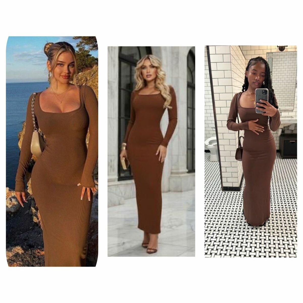 Optez pour l'élégance avec cette robe longue moulante marron. Conçue pour épouser vos courbes avec style, elle est idéale pour les soirées et les événements chics. Le matériau extensible assure un confort optimal, tout en ajoutant une touche sophistiquée à votre look. Portez-la avec des talons pour une allure élégante ou des sandales pour une tenue décontractée mais raffinée. Parfaite pour celles qui aiment se démarquer par leur élégance.