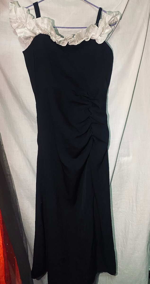 Découvrez cette élégante robe longue noire ornée de volants. Parfaite pour une soirée ou un événement spécial, cette robe combine chic et féminité. Avec son mélange de couleurs classique et son design raffiné, elle est le choix idéal pour séduire et impressionner.