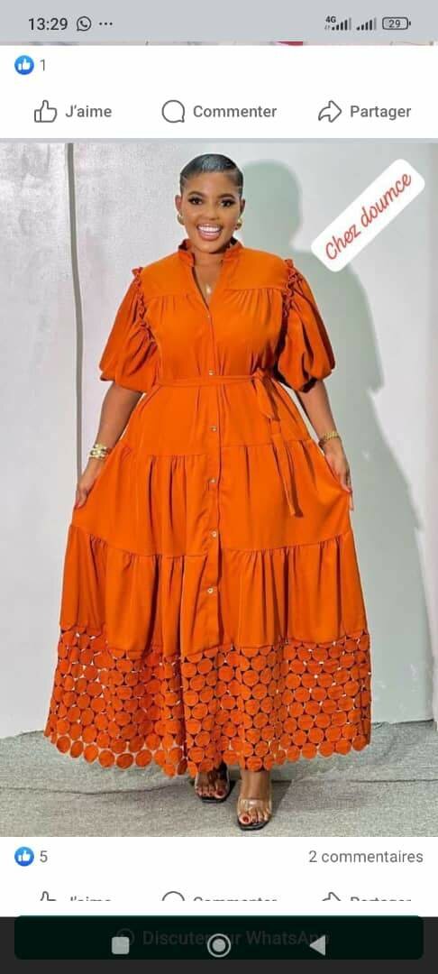 Découvrez cette magnifique robe longue orange avec des détails en dentelle. Parfaite pour les occasions spéciales ou une soirée élégante.