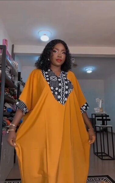 Robe longue pagne jaune moutarde à bustier rayé. Tenue élégante et pratique pour toutes occasions. Article neuf.