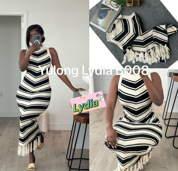Robe longue rayée noir et blanc avec une silhouette flatteuse. Parfaite pour une sortie chic ou une occasion spéciale. Tissu doux et confortable pour toute la journée.