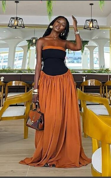 Robe longue orange et noire élégante pour femmes