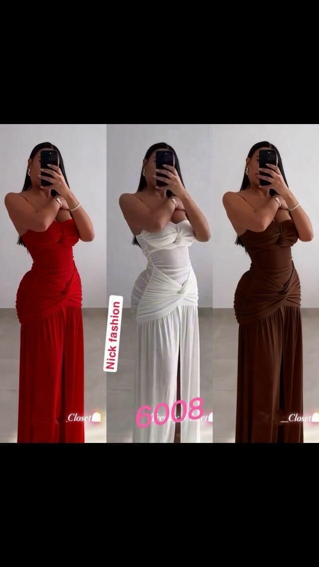 Découvrez cette robe longue sans bretelles, parfaite pour les occasions spéciales. Conçue dans un tissu fluide et confortable, elle met en valeur votre silhouette. Disponible en rouge, blanc et marron.