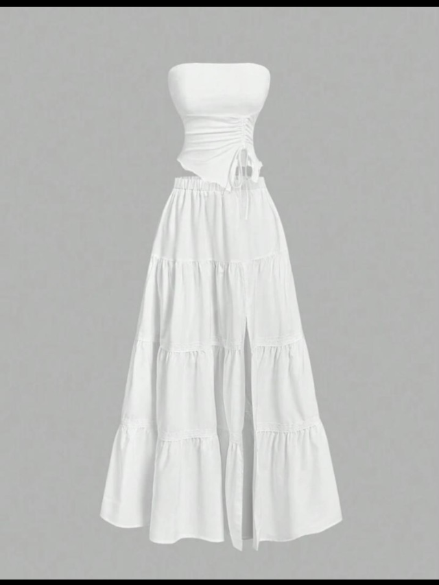 Optez pour cette élégante robe longue blanche sans bretelles. Parfaite pour des soirées estivales ou des occasions spéciales, elle offre un style aérien et féminin. Sa coupe flatteuse et son design léger en font un choix idéal pour rester chic et confortable.