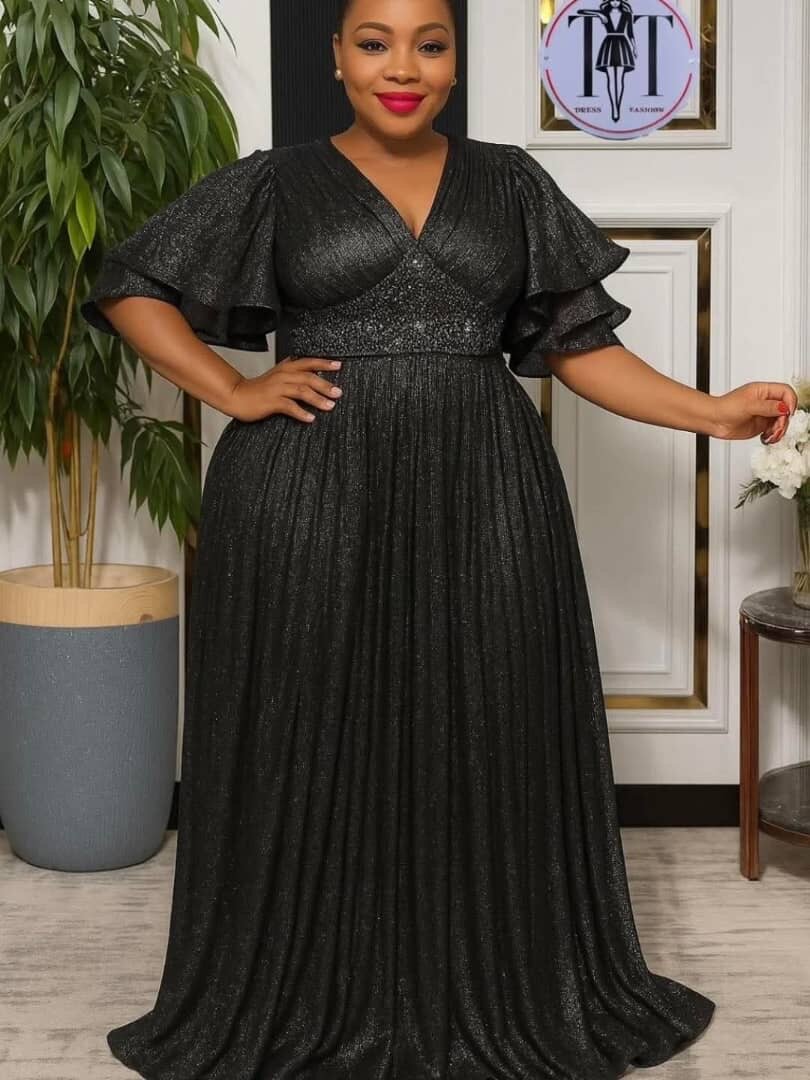 Sublimez votre soirée avec cette robe longue éclatante, idéale pour les grandes occasions. Confectionnée dans un tissu plissé somptueux, elle se distingue par ses manches volantes et une ceinture incrustée de perles. Parfaite pour les femmes en quête d'élégance et de confort. Faites sensation !