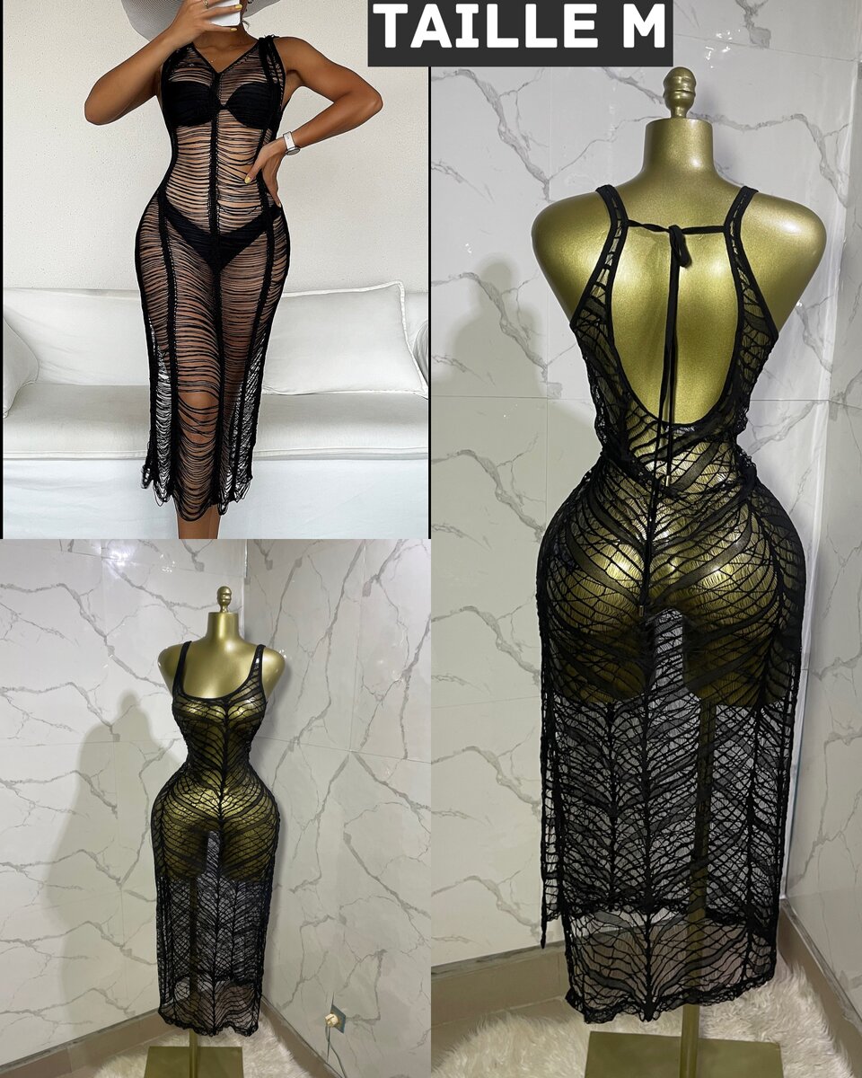 Découvrez cette robe longue transparente ultra chic, parfaite pour des soirées glamour. Avec sa conception en dentelle noire, elle dévoile subtilement votre silhouette tout en apportant une touche d'élégance. Idéale pour les événements spéciaux, elle incarne la sophistication moderne. Taille M disponible.