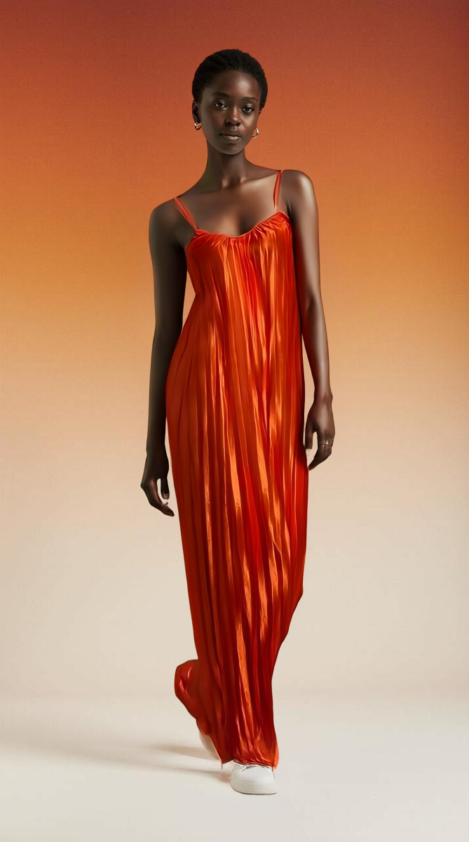 Robe maxi en satin orange, parfaite pour un look élégant et stylé. Idéale pour des occasions spéciales ou une tenue décontractée chic. Confortable et fluide, elle vous offre une allure sophistiquée et glamour.