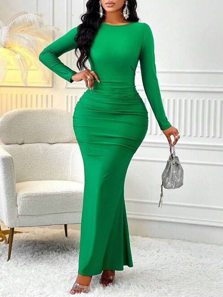 Découvrez cette magnifique robe longue émeraude, parfaite pour vos soirées élégantes. Avec son dos ouvert et ses détails noués, elle allie sophistication et sensualité. Idéale pour faire sensation et vous démarquer !