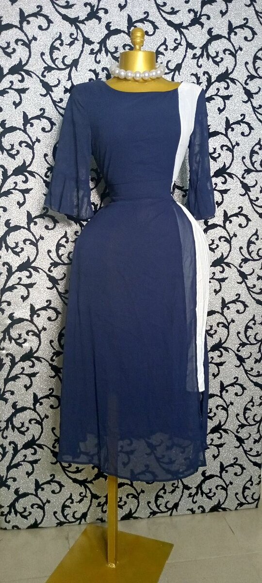 Découvrez cette robe mi-longue bleu marine, parfaite pour des occasions spéciales. Conçue dans un tissu de qualité, elle offre une silhouette élégante et féminine. Sa coupe cintrée et ses manches fluides ajoutent une touche de sophistication.