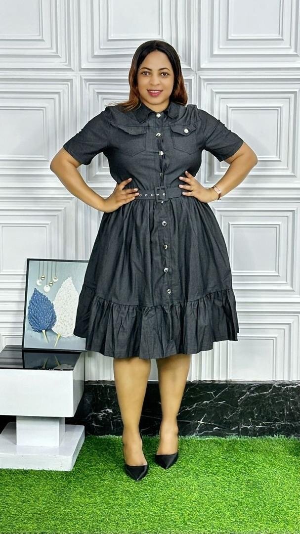 Découvrez cette robe grise chic avec des boutons et des volants. Parfaite pour des occasions spéciales ou un look de tous les jours, elle allie confort et style.