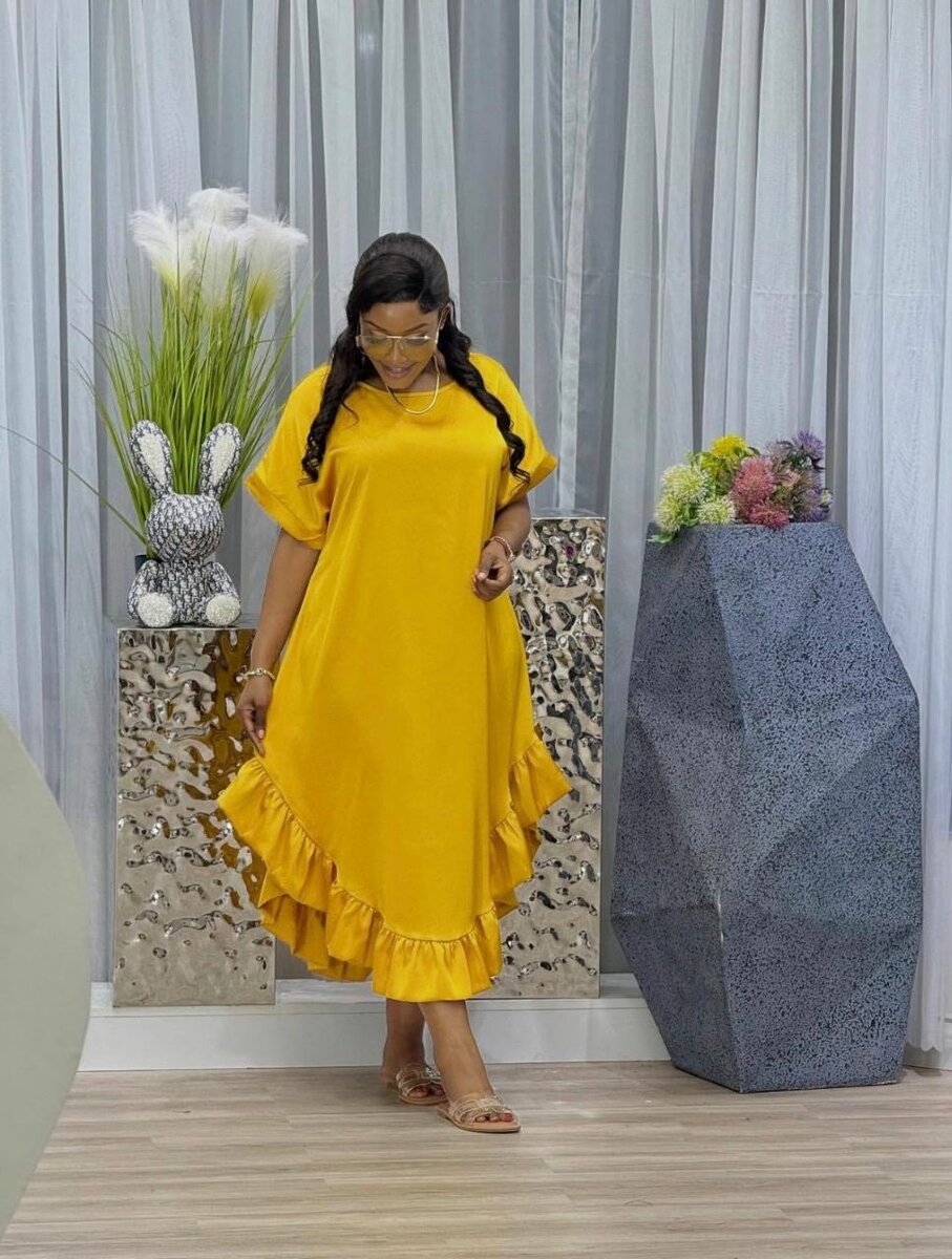 Découvrez cette robe chic et féminine, parfaite pour les occasions spéciales ou une sortie décontractée. Elle est conçue dans un tissu confortable et présente une coupe évasée avec des volants élégants. Disponible en plusieurs couleurs.