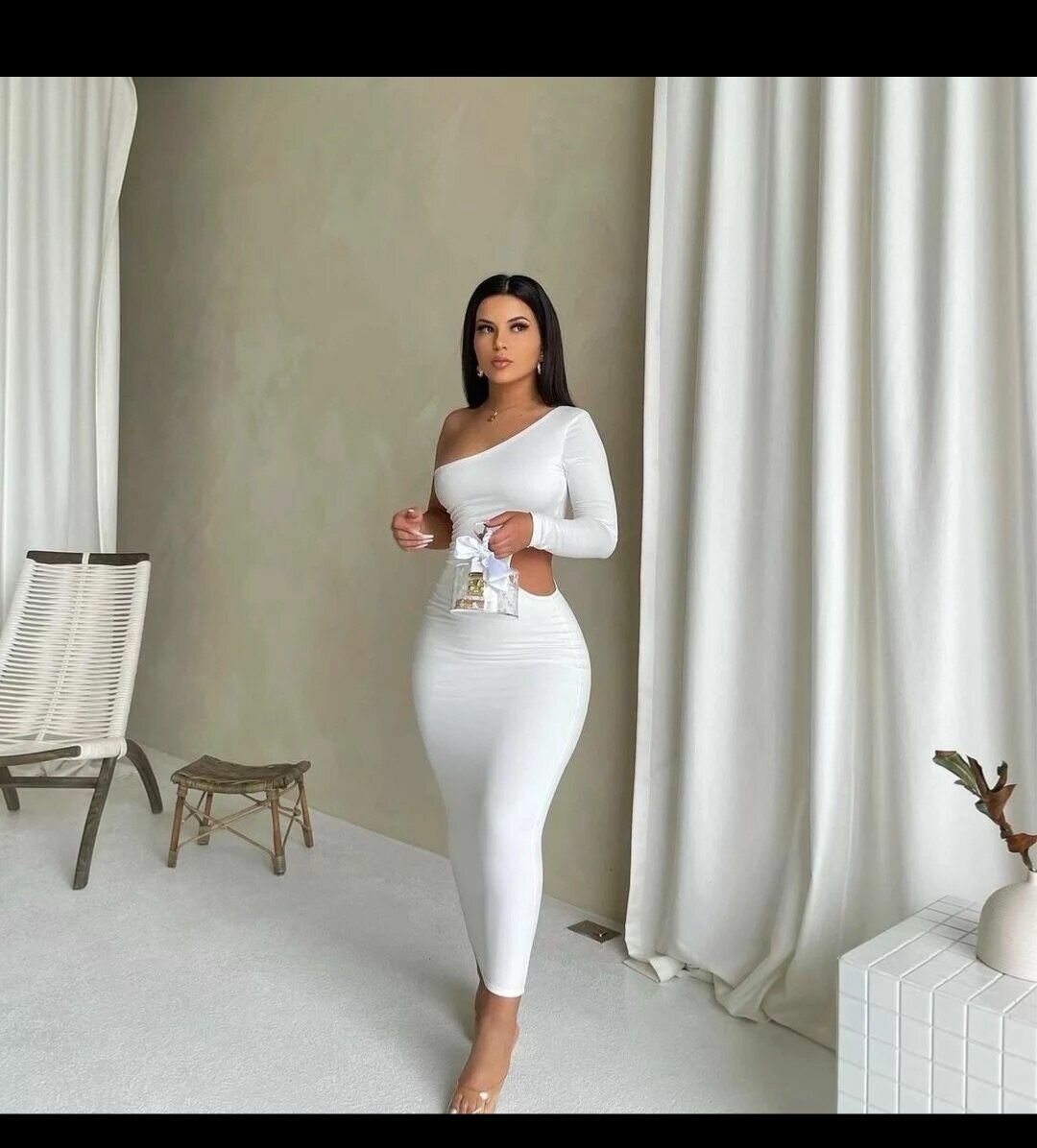 Découvrez cette robe moulante asymétrique blanche, parfaite pour une soirée ou un événement spécial. Confectionnée dans un tissu extensible confortable, elle met en valeur votre silhouette avec élégance. Idéale pour les femmes cherchant une tenue chic et moderne.
