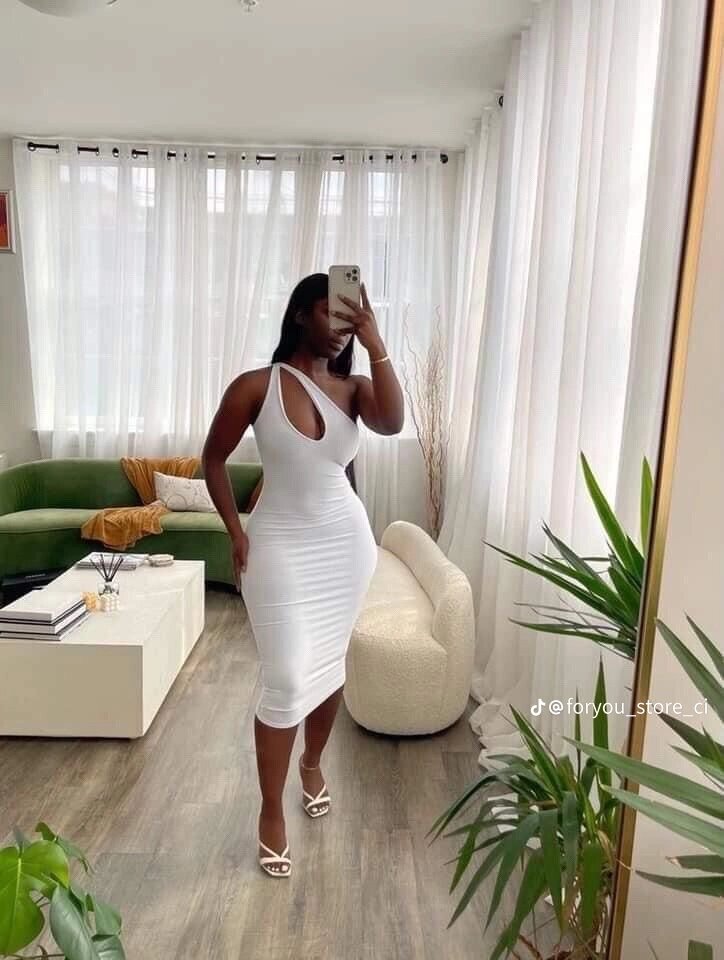 Cette robe moulante blanche met en valeur votre silhouette avec une élégance raffinée. Parfaite pour une soirée chic ou une sortie entre amis, elle offre une allure moderne et sophistiquée. Le tissu léger et extensible assure un confort optimal tout en épousant parfaitement vos courbes. Associez-la à des talons pour un look impeccable.