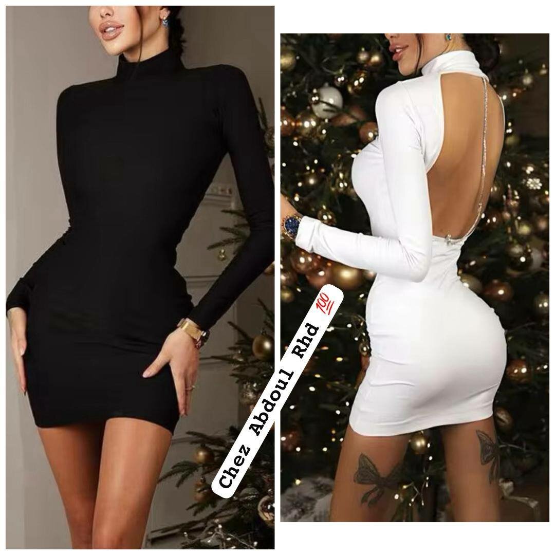 Élégante robe moulante à manches longues et dos ouvert, idéale pour soirées et événements spéciaux. Conçue pour mettre en avant votre silhouette avec style et sophistication.