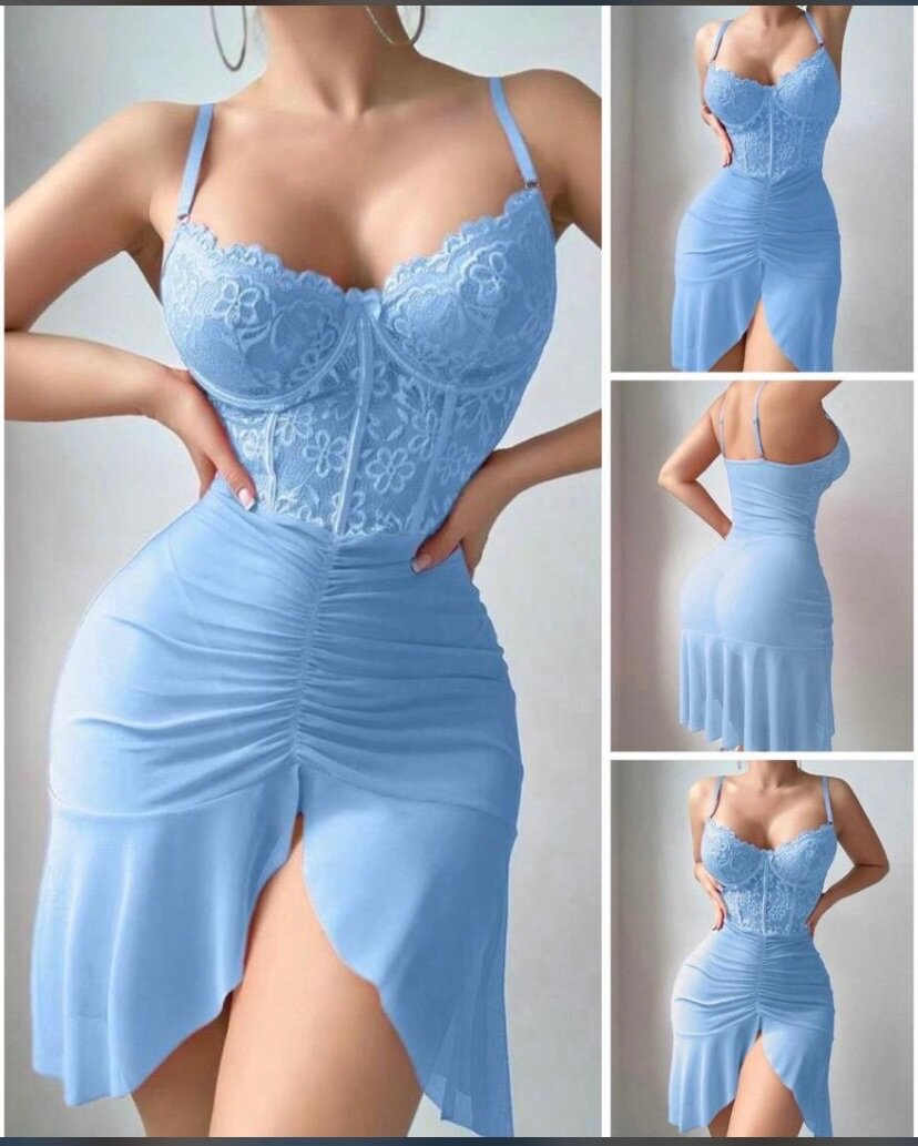 Cette robe moulante bleue avec des détails en dentelle est la parfaite fusion de l’élégance et de la féminité. Sa coupe flatteuse accentue vos courbes, tandis que la dentelle délicate ajoute une touche de sophistication. Parfaite pour une soirée ou un événement spécial, elle vous assure un look chic et raffiné.