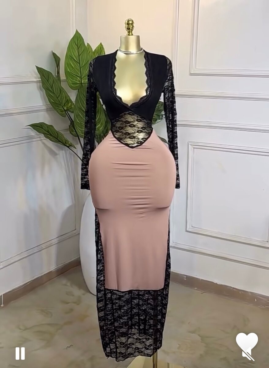 Élégante robe moulante en dentelle pour soirées spéciales. Design séduisant avec découpe en V et jupe ajustée. Confort et style pour des occasions inoubliables.