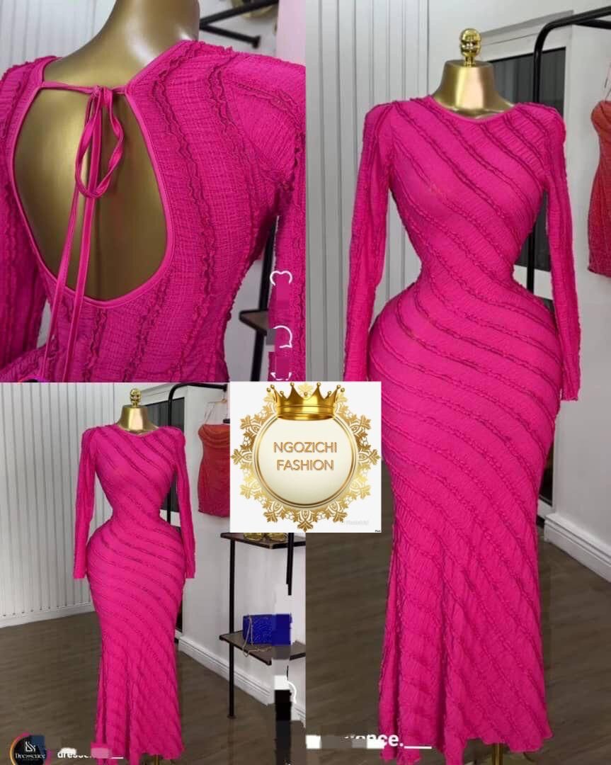 Cette robe moulante fuchsia est idéale pour une soirée élégante ou un événement spécial. Son design ajusté met en valeur la silhouette tandis que le dos ouvert ajoute une touche séduisante. Fabriquée avec un tissu confortable et extensible, elle offre un fini raffiné et chic. Parfaite pour être au centre de l'attention.