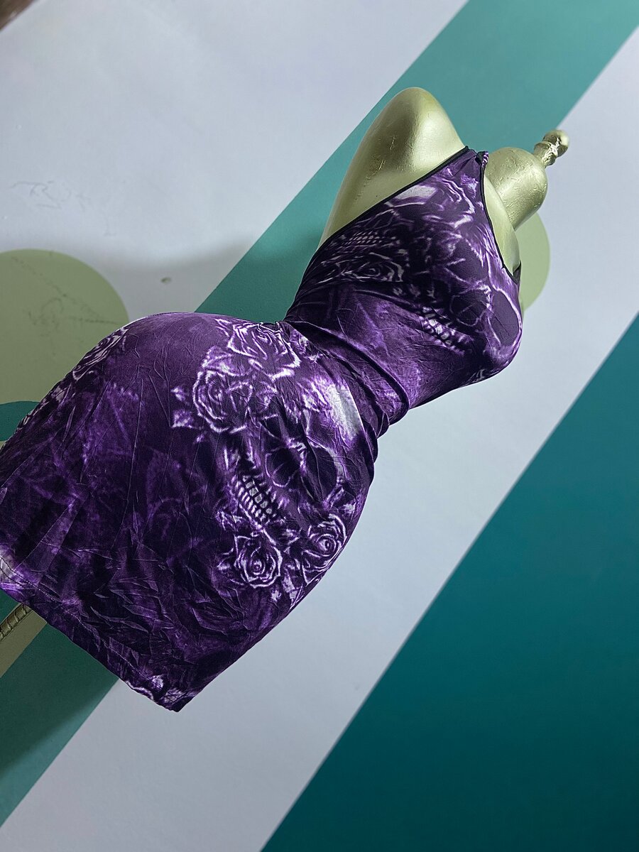 Optez pour cette robe moulante violette à motifs gothiques pour un look audacieux et séduisant. Confortable et stretch, elle est idéale pour les soirées ou les sorties. Sa coupe flatteusement ajustée mettra en valeur votre silhouette. Un choix parfait pour les amateurs de mode alternative, prête à faire tourner les têtes. Exprimez votre style unique et votre confiance en vous avec cette pièce incontournable.
