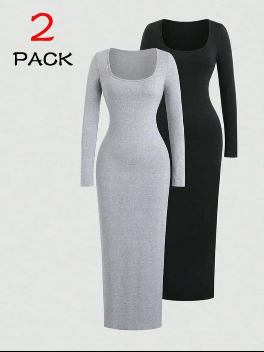 Lot de 2 robes moulantes à manches longues, parfaites pour toutes occasions. Confort et style avec des couleurs classiques. Idéales pour soirées ou décontractées, matière douce pour un ajustement parfait.