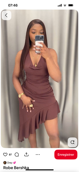 Découvrez cette robe moulante marron, idéale pour une soirée chic. Conçue avec une coupe asymétrique et un design flatteur, elle mettra en valeur votre silhouette. Parfaite pour des évènements spéciaux ou des dîners élégants, cette robe deviendra un incontournable de votre garde-robe. Associez-la à des accessoires dorés pour un look complet et sophistiqué.