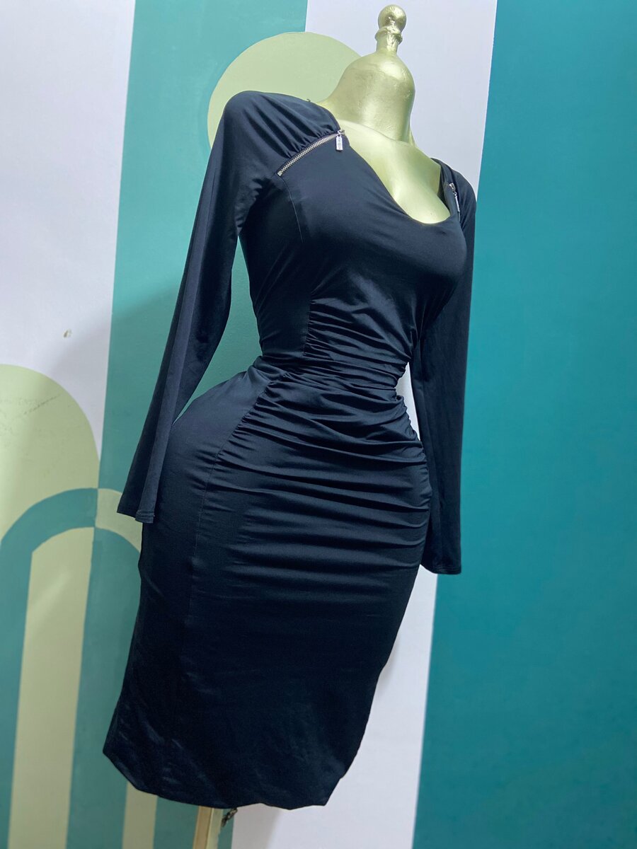 Cette robe moulante noire avec détails zippés est idéale pour une soirée chic. Son tissu extensible souligne vos courbes avec élégance, tandis que les fermetures éclair ajoutent une touche moderne. Parfaite pour des occasions spéciales ou une sortie en ville, elle se marie bien avec des talons ou des accessoires audacieux.
