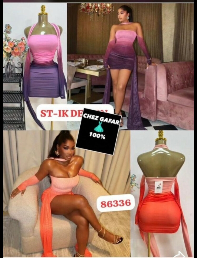 Élégante robe moulante avec dégradé de couleurs vibrantes, style sans manches et manches amovibles. Parfaite pour soirées et événements spéciaux, elle offre un look séduisant et moderne.
