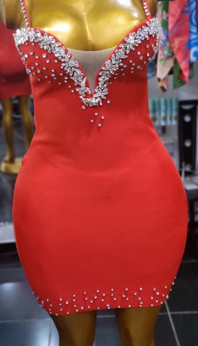Cette robe moulante rouge avec un décolleté orné de perles et un design ajusté est parfaite pour les soirées spéciales. Son allure élégante et glamour vous mettra en valeur lors de toute occasion.