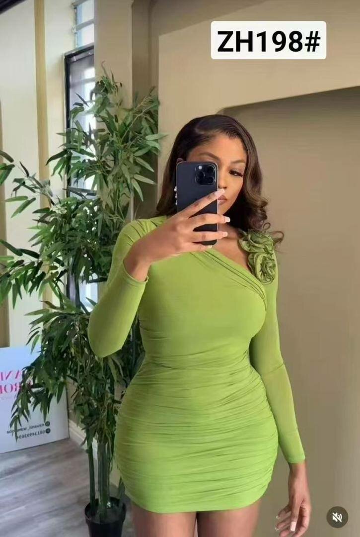 Découvrez cette robe moulante verte à manches longues, parfaite pour une soirée glamour ou une sortie entre amis. Son design ajusté mettra en valeur votre silhouette tandis que le détail floral apporte une touche unique. Idéale pour les événements spéciaux ou les rendez-vous.