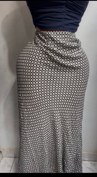 Jupe longue grise à motifs géométriques