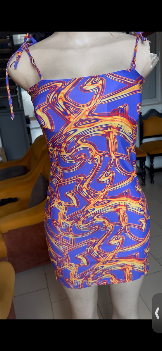 Éblouissante robe d'été multicolore avec motif psychédélique. Parfaite pour des journées ensoleillées ou des soirées décontractées. Conçue pour apporter une touche de couleur et de style à votre garde-robe.