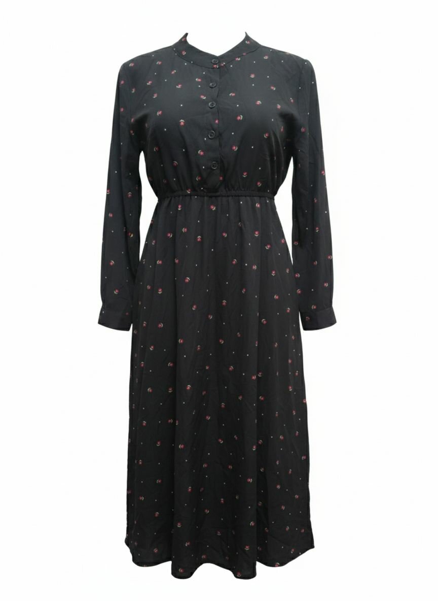 Élégante robe noire à fleurs, idéale pour toutes occasions. Conception en tissu doux et fluide pour un confort optimal. Style intemporel avec manches longues et coupe cintrée, parfaite pour un look raffiné au quotidien. Disponible en plusieurs tailles.