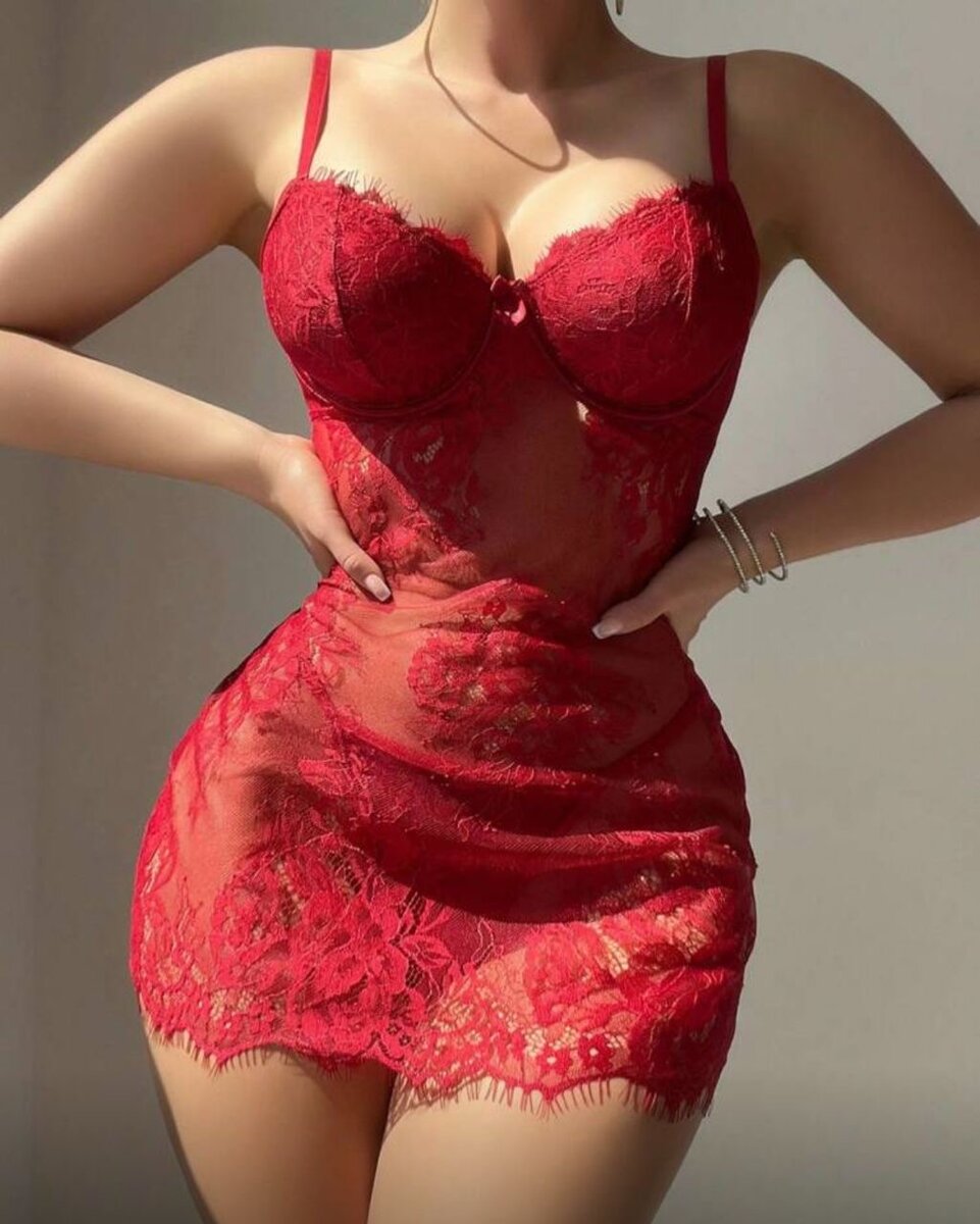 Découvrez notre robe nuisette en dentelle rouge, conçue pour sublimer votre silhouette avec élégance et sensualité. Idéale pour des moments intimes inoubliables. Tissu doux et confortable, avec un design ouvert pour un style audacieux.