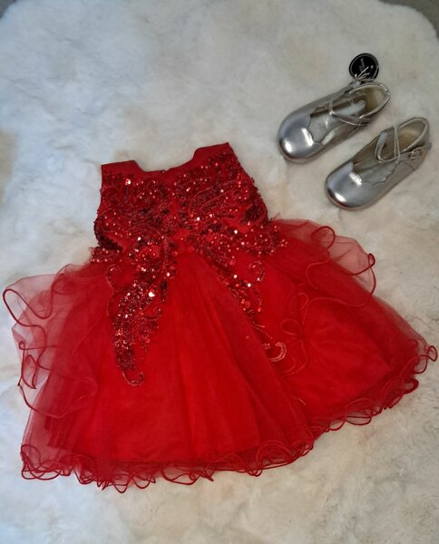 Cette splendide robe rouge pour fille est parfaite pour les occasions spéciales. Avec son design scintillant et ses manches délicates, elle ajoutera une touche d'élégance à toute tenue de fête. Idéale pour les mariages, anniversaires et autres célébrations.