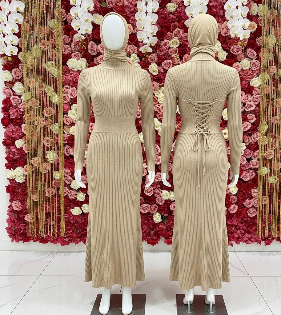 Robe pull côtelée beige élégante