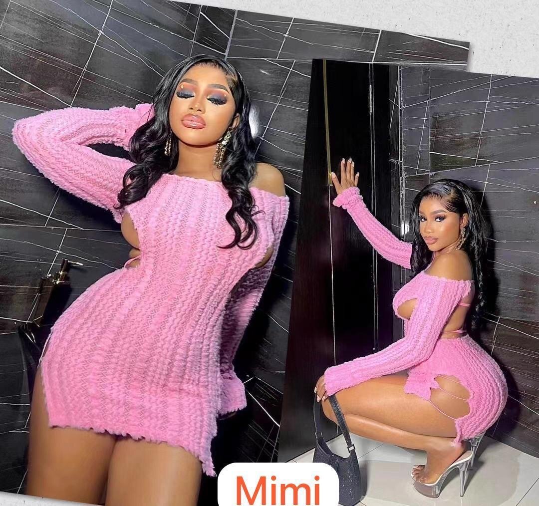 Robe pull rose avec découpes audacieuses, idéale pour des soirées glamour. Tissu confortable et extensible pour un ajustement parfait. Affirmez votre style unique.